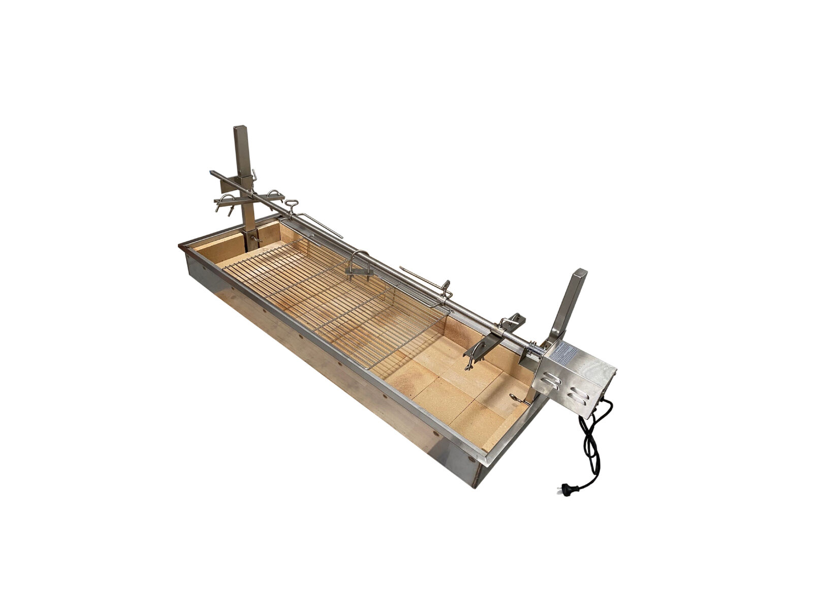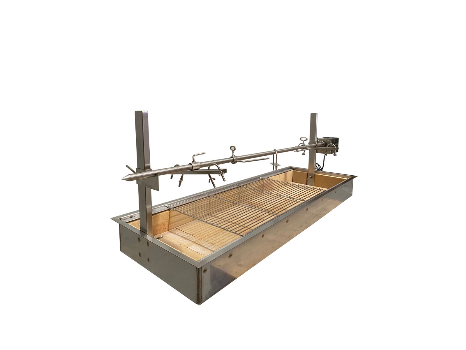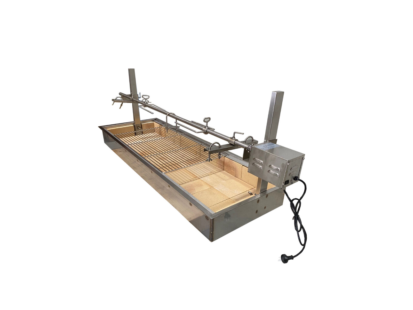 The Alfresco drop in charcoal BBQ is designed with simplicity and elegance in mind and neat for a modern alfresco design. It has a grill and the spit rotisserie which is height adjustable and capable to cook a whole lamb or pig so you can cook to your liking and achieve the perfect spit roast. It also comes with a stainless steel motor designed to turn at 5RPM and hold 40kg. Perfect to enjoy the outdoors in the company of family and friends.