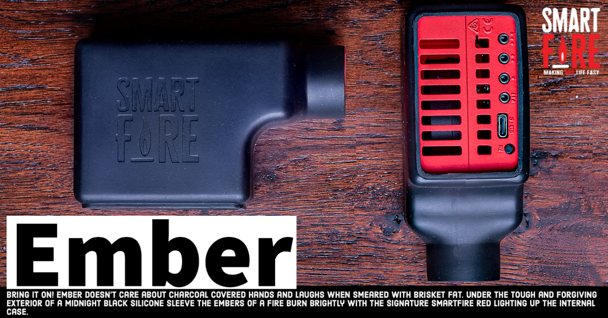 Flame’s silicone sleeve is Smartfire’s signature red and the inner plastic case is matt black. Ember is black silicone sleeve and the inner plastic case is matt Smartfire red.
