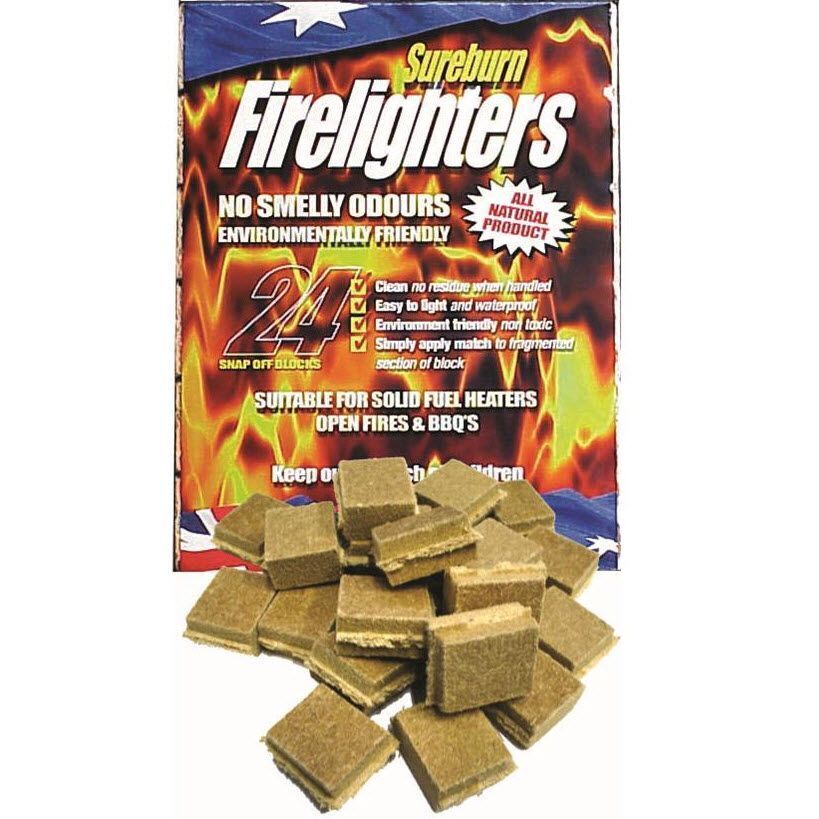 Sureburn Firelighters are the Eco-alternative to petroleum based firelighters, they contain no petroleum products.
